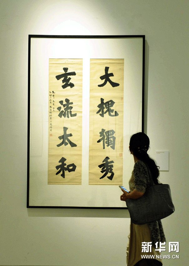 (2)10月11日,參觀者在欣賞弘一法師的書法作品。