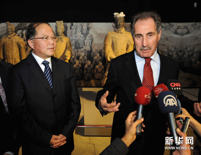 作為2012年土耳其“中國文化年”主要活動(dòng)之一的“華夏瑰寶展”20日晚在土耳其最大城市伊斯坦布爾的老皇宮博物館開幕,展覽選擇了來自中國的故宮博物院、上海博物館、陜西歷史博物館、陜西省考古研究院、秦始皇帝陵博物院等11家文博機(jī)構(gòu)的文物精品101件(組),其中包括來自秦始皇帝陵博物院的5件兵馬俑。新華網(wǎng)圖片 馬研 攝