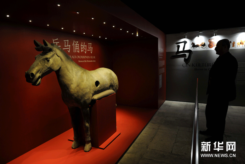 作為2012年土耳其“中國文化年”主要活動(dòng)之一的“華夏瑰寶展”20日晚在土耳其最大城市伊斯坦布爾的老皇宮博物館開幕,展覽選擇了來自中國的故宮博物院、上海博物館、陜西歷史博物館、陜西省考古研究院、秦始皇帝陵博物院等11家文博機(jī)構(gòu)的文物精品101件(組),其中包括來自秦始皇帝陵博物院的5件兵馬俑。新華網(wǎng)圖片 馬研 攝
