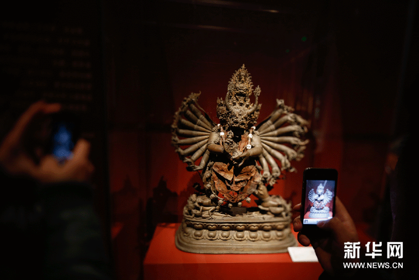 (6)11月27日,嘉賓參觀中正殿內(nèi)陳列的佛教文物(移軸鏡頭拍攝)。