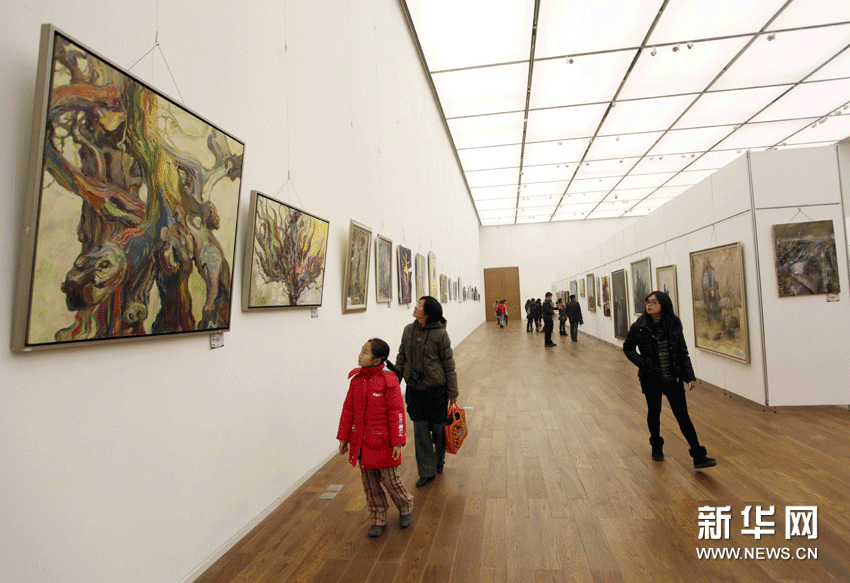 (2)12月1日,觀眾在天津美術館觀看展出的青年美術作品。