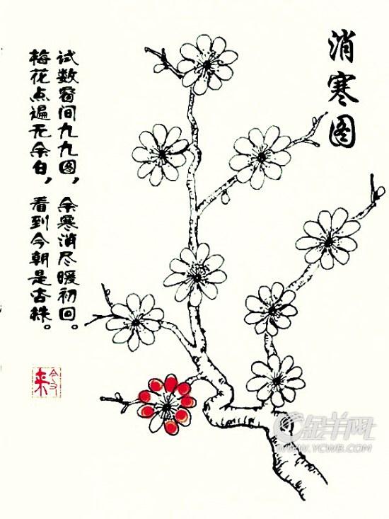 梅花型的九九消寒圖,又被稱為雅圖!兜劬┚拔锫浴吩疲“日冬至,畫素梅一枝,為瓣八十有一,日染一瓣,瓣盡而九九出,則春深矣,曰‘九九消寒圖’。”