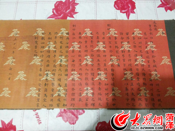 何淑泰老人為記者展開(kāi)圣旨