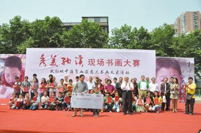 “伸出您的援助之手,讓我們共筑生命長城!”5月15日,瀘州市納溪區(qū)一則現(xiàn)場書畫義賣,救助地中海貧血癥患兒王原財?shù)某h書被掛到網(wǎng)上。這則倡議書很快就在當(dāng)?shù)匾饛娏曳错,不到兩天時間就征集100余幅書畫作品。