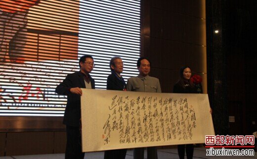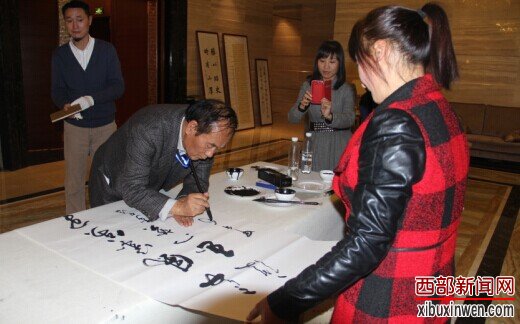 另訊11月8日記者節(jié)當天,陜西省新聞書畫家協(xié)會由孟西安主席帶隊,組織了20多位新聞書畫家和周恩來的特型演員宋建華、海政文工團歌唱家周發(fā)猛、歌壇新秀擺亞茹等藝術(shù)家奔赴革命圣地延安,深入基層,為老區(qū)群眾和延安新區(qū)贈送書畫作品和文藝演出,學習、踐行習近平總書記在文藝座談會上的講話精神。西部新聞網(wǎng)總編張龍也一同前往延安做全程報道。