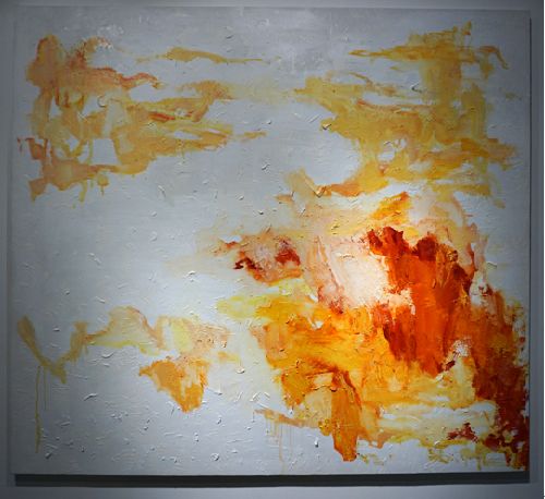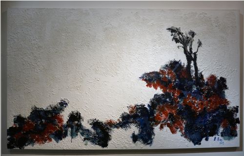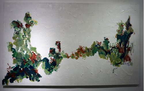 從王清州在今年的部分作品創(chuàng)作上可以發(fā)現(xiàn),他在筆墨語(yǔ)言上進(jìn)一步淡化了造型,畫(huà)面代之以純粹精神化的線條和色塊來(lái)呈現(xiàn)。線條和色塊,對(duì)于王清州而言,完全是信手捏來(lái),收放自如。似花又非花,是山又不是山,畫(huà)面里的一切都不是現(xiàn)實(shí)的復(fù)刻,而是精神的復(fù)調(diào)。水墨之外,這次新作里的油畫(huà)作品,也是同樣的瀟灑氣象。在我覺(jué)得,不需要界定王清州這批新作是在走抽象路子,還是意象。它們所反映的就是王清州在純粹地寫(xiě)心。“我的作品也許讓人覺(jué)得既飽滿又簡(jiǎn)約,但自然界是復(fù)雜的,有直白和看不見(jiàn)的隱藏,可視的現(xiàn)實(shí)也許單薄了許多。……畫(huà)面經(jīng)常和現(xiàn)實(shí)坐著矛盾的兩端,恰為風(fēng)險(xiǎn)的開(kāi)始,往往是心靈和自我歷史的情感表達(dá),偶又基于精神及之外。”王清州老師介紹說(shuō)。