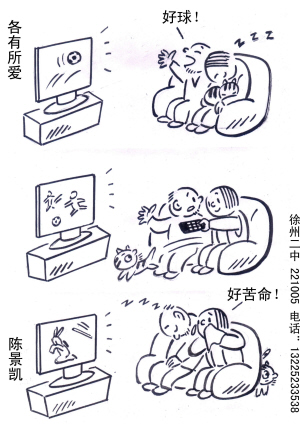 長期擔(dān)任數(shù)學(xué)和美術(shù)兩門課程的教學(xué)工作,陳景凱也始終沒有放棄自己的漫畫創(chuàng)作。他仍是《諷刺與幽默》與全國各大報刊的?停下嫾覅俏臏Y在編輯《中國中學(xué)生報》時,更是期期向他約稿。而在徐州二中的校報上,陳景凱還堅持開設(shè)了《一畫一文》的專欄,每月一期,立足“趣”字,圖文并茂,妙趣橫生,受到了師生們的喜愛。