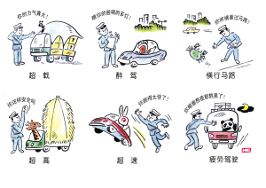 有次在公交車上,他看到老年人上車時,有年輕人坐在那兒假裝打瞌睡,便隨手記了下來,后來又觀察到有人在車上大聲打電話,亂吃東西,還有看到小偷行竊不敢吱聲的。他把這些都記下,畫了出來,公交車上的不文明行為便躍然紙上了:不該睡的時候睡了,不該吃的時候吃了,不該講的時候講了,該說的時候又不敢說了,“要做個有心人,題材才會源源不斷。我每年都畫這么多的畫,不是靠空想,是靠生活,要觀察生活。”