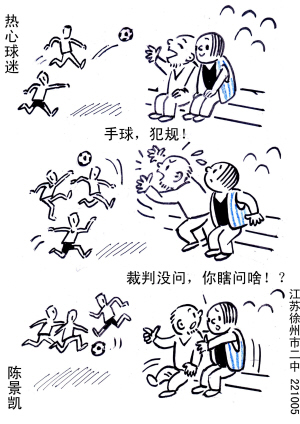 漫畫大師華君武曾鼓勵陳景凱說,藝術(shù)家應(yīng)該畫自己熟悉的生活,在熟悉的生活中發(fā)揮才能。“這句話,讓我受益匪淺。我是個教師,我熟悉校園,了解學(xué)生,我的漫畫創(chuàng)作題材很廣泛,校園漫畫是其中的一個重要品種。”在陳景凱看來,校園生活看似平凡單調(diào),那些生龍活虎、朝氣蓬勃又單純可愛的孩子們,正處在充滿幻想的年紀(jì),常常做出些讓人又可氣又好笑的舉動,只要你與他們多作交流和接觸,洞察他們的歡樂與煩惱,漫畫創(chuàng)作的鮮活素材簡直可以多到取之不盡。