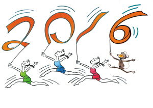 “漫畫創(chuàng)作首先要注重奇巧性”,陳景凱指著電腦屏幕上那幅剛剛完稿的《新跨越》說:“你看,三個姑娘跳著迎新年的紅綢舞,一只跳舞的小猴排在她們后面。小猴子怎么可能會跳紅綢舞呢?但當(dāng)你想到明年是猴年時,就感到這畫面奇巧了。”