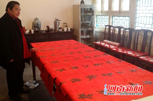 “說(shuō)起與劉迅甫老師的結(jié)識(shí),緣于十年前他到我所在的工地看望、慰問(wèn)農(nóng)民工。那年起至今,每逢年末,劉老師都會(huì)聯(lián)系我代表工人們接收他書(shū)寫(xiě)的過(guò)節(jié)春聯(lián)。今天,劉老師再次將100副春聯(lián)交到我的手中。”遠(yuǎn)離故土、進(jìn)京已十余年的河南淮陽(yáng)籍務(wù)工人員王衛(wèi)東告訴記者,十年間,每當(dāng)他拿到老鄉(xiāng)劉迅甫書(shū)寫(xiě)的春聯(lián),都會(huì)感到特別的溫暖。