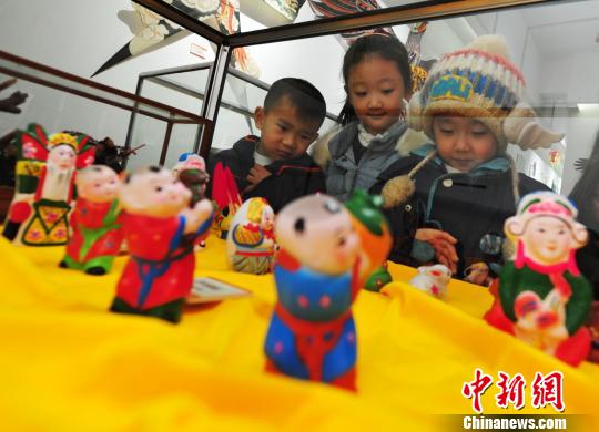 圖為傳統(tǒng)的“泥塑藝術”吸引孩童駐足觀看。 翟羽佳 攝