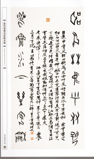 王冰石變法成功了。今天,已步入老年的學(xué)者型的書家王冰石壯心不已,沒有止步,他在深入研究了中國書法史之后提出了一個(gè)新的研究課題,那就是如何研究開發(fā)取之不盡、用之不竭的中國書法資源問題。他以為,我們現(xiàn)在見過的諸多碑帖等等,大都學(xué)過熟知了,這些已經(jīng)存在的東西,很可能只是九牛一毛,中華幾千年的文字史,其書寫的形式和內(nèi)涵,大量的還埋在地下,許多新出土的文字資料是一座極為豐富的中國書法礦藏,有待于我們?nèi)ネ诰,去認(rèn)識(shí),去研究。如同人類對(duì)大自然的探索和發(fā)現(xiàn)還只是滄海一粟一樣,國人今天對(duì)中國書法還有很多的未知。即便是我們今天所知的書藝傳統(tǒng),也還有未被研究開發(fā)的空白。比如漢簡上的草書,秦簡上的篆書,尚無人問津,倘能把這種古人沒有見過的書體開發(fā)出來,那對(duì)中國書法的發(fā)展將會(huì)是一種什么樣的貢獻(xiàn)!