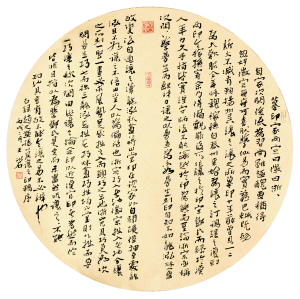 林散之之所以是林散之,沙曼翁之所以是沙曼翁,是因?yàn)樗麄冏猿梢患遥L(fēng)格獨(dú)特,風(fēng)骨傲人。為實(shí)現(xiàn)更高的目標(biāo),王冰石從行草書上突破,毅然變法。然而來一個(gè)突變談何容易,新的表現(xiàn)形式不能憑空創(chuàng)造,需與千年書法之根緊緊相連。那些日子里,王冰石苦思苦想,寢食難安,真是如蘇東坡所說“非人磨墨墨磨人”。終于,王冰石在學(xué)習(xí)晚明書家黃道周的詩帖中找到了變法契機(jī)。舍棄自己多年的書寫習(xí)慣,王冰石對(duì)黃書按自己的審美理念進(jìn)行取舍,在原有的流麗書風(fēng)中糅進(jìn)稚拙渾樸之家,以求實(shí)現(xiàn)碑貼兼容之愿望,實(shí)現(xiàn)內(nèi)涵上的超越。而在字形結(jié)構(gòu)上,王冰石在吸取了黃書精華之后,從漢字結(jié)體切入,用逆向思維方法,改變傳統(tǒng)帖學(xué)審美觀念,結(jié)體變長為扁,重心偏下,給人以俯視之感,效果古拙。如此一變,王冰石行草書容量大增,內(nèi)涵豐厚,不同于古人也不同于今人,個(gè)性躍然紙上。適逢“賽克勒杯”國際書法大賽要在北京開展,王冰石將變化后的作品寄上參賽,引起轟動(dòng)性的爭議。書法大家尉天池對(duì)王冰石的新作大力贊賞,評(píng)價(jià)為“書法各體兼擅,風(fēng)格清雅矯健,陰柔與陽剛沖和,功力與神采俱現(xiàn),有很高的審美見解水平。”結(jié)果,王冰石的作品獲得一等獎(jiǎng),獎(jiǎng)品是一方當(dāng)時(shí)價(jià)值6000元的雕滿羅漢的端硯……