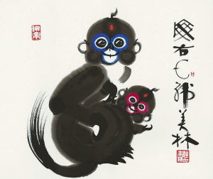 事實上,這只水墨小猴還不能代表韓美林畫猴的全部實力。