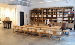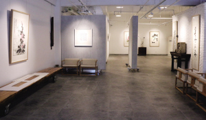 “正空間”總共300多平方米,里面裝修很簡(jiǎn)單,但一塊漢畫像石,一個(gè)仿古花瓶,一架古琴,一兩只枯蓮蓬,又讓這個(gè)空間顯得十分時(shí)尚。這里不僅可以進(jìn)行比較正規(guī)的畫展,還能喝茶、品香、聽琴,“談笑間就有可能談成一筆交易。”
