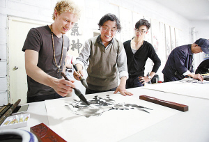 蓋伊·特拉維斯對中國的了解比較深一點(diǎn),會說不少中國話,對書畫藝術(shù)多少也有些了解。他說:“不管是西方還是東方,藝術(shù)總有相通的地方。美的東西用耳朵能聽出來,用眼睛也能看出來,中國書畫的魅力在于意境,肯定不是我們在這比劃兩下就能學(xué)會的;貒笪視^續(xù)研究中國藝術(shù)。”