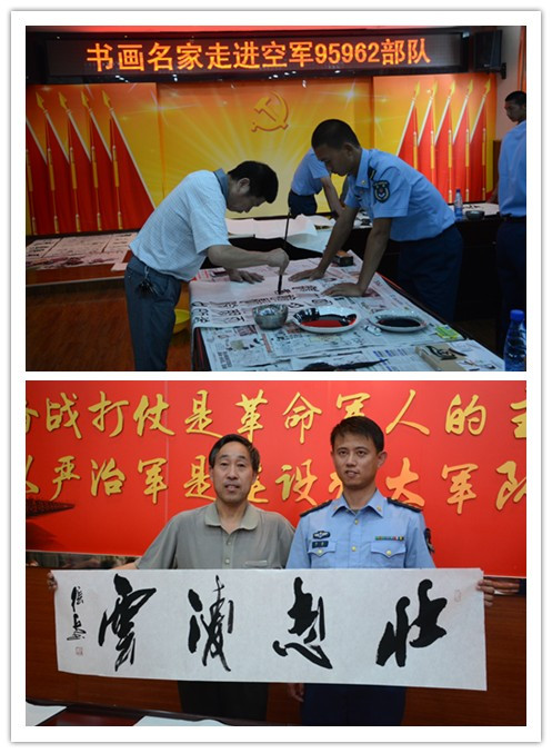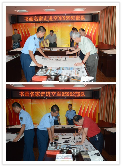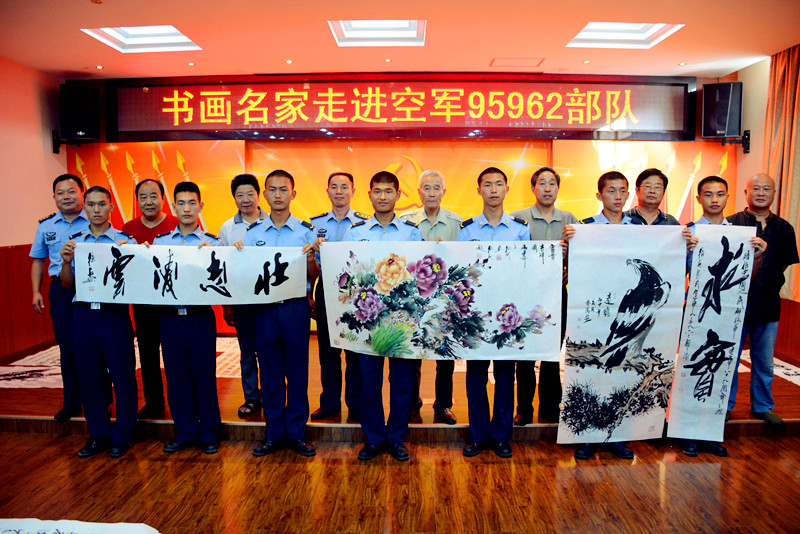 中國(guó)黃淮網(wǎng)江蘇徐州7月25日訊(老藤 周越民)“八一”前夕,中國(guó)管理科學(xué)研究院、新領(lǐng)軍智庫(kù)聯(lián)盟書畫專家委員會(huì)翰林坊書畫院、中國(guó)黃淮網(wǎng)等聯(lián)合走進(jìn)空軍95962部隊(duì),揮毫潑墨,以自己獨(dú)特的方式慶祝解放軍建軍89周年,受到廣大官兵一致贊揚(yáng)。