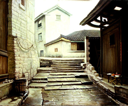 莊保林先生的油畫(huà)《寧?kù)o的小鎮(zhèn)》創(chuàng)作于1990年,該畫(huà)具有極高的色彩與形象掌控力,通過(guò)光影虛實(shí)對(duì)比烘托,在淡雅中傳遞一種恒久的美好。在《詩(shī)意的浪漫》系列中,他利用優(yōu)雅、飄逸的筆觸,配以清新、感性的色調(diào),描繪出一幕幕古典詩(shī)詞背后唯美、動(dòng)人的歷史愛(ài)情畫(huà)卷,引領(lǐng)觀眾沉浸在一幕幕經(jīng)典、浪漫的往事之中,凸現(xiàn)其曠世奇才與至真性情。才子,佳人,似笑非笑的嫣然,執(zhí)迷不悔的凜然,心照不宣的釋然,讓我們?cè)诒步患又谢腥?hellip;…