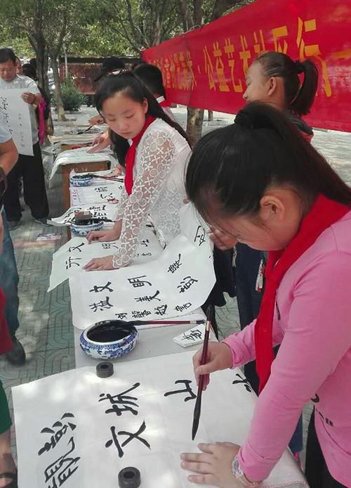 (本網(wǎng)訊 滕富強(qiáng))2016年9月23日上午,徐州市鼓樓區(qū)環(huán)城辦事處王場社區(qū)在廣場舉辦了一場公益藝術(shù)活動(dòng),請來了本社區(qū)的幾名書畫家和王場小學(xué)書法班的學(xué)生。他們當(dāng)場表演書畫,老書畫家寫蒼勁有力的書法作品,兒童們畫百米長卷,小學(xué)生都在寫有關(guān)和諧社會、遵紀(jì)守法、發(fā)揚(yáng)公德意識、講文明禮貌的內(nèi)容,贈送給社區(qū)的居民,受到大家的一致稱贊和歡迎,社區(qū)周主任熱情地為居民講解互敬、互幫的鄰里關(guān)系,并表示今后多搞類似的社區(qū)文明活動(dòng)!