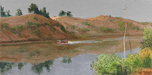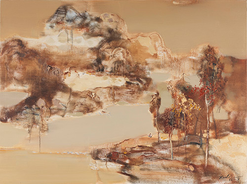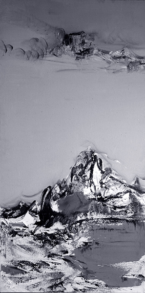 對(duì)于中國傳統(tǒng)書畫的研習(xí)與創(chuàng)作,讓徐里從西畫學(xué)院教育的造型體系里解脫而出,這開啟了他新世紀(jì)以來不斷將中國書畫元素植入油畫的深層變革與探索。這主要表現(xiàn)在兩個(gè)方面:一是他的油畫寫生逐步從條件光色的再現(xiàn)轉(zhuǎn)向意象性表現(xiàn),二是將文人山水畫的意象觀照與寫意筆墨進(jìn)行油彩的異質(zhì)同構(gòu)轉(zhuǎn)換,探求油畫文心意寫的鮮明中國精神。他將書法用筆的剛健雄渾轉(zhuǎn)換為油彩筆觸的雄強(qiáng)奇肆、縱橫騰挪,使畫面既有超越物象的細(xì)微敘事,也讓被適度符號(hào)化的物象通過筆線的抽象性表現(xiàn)而承載心性、境界與品格。畫中早期人物形象實(shí)將希臘古代瓶繪、埃及墓室石刻和藏傳佛教繪畫三者融合為一,通過書寫性筆線所達(dá)到的物我合一、所承載的格調(diào)與境界,才真正凸顯了意象油畫以文心詩境作為其內(nèi)核的中國藝術(shù)精神。中西融合表達(dá)出人生達(dá)觀的哲思化意味,是道天人合一,心物交融,意境上進(jìn)入禪宗的境界。