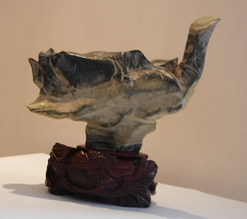 江蘇徐州發(fā)現(xiàn)的這塊石頭十分奇特,從七個角度觀察,竟然會呈現(xiàn)七個完全不同的、完整的動物圖像,這在世界范圍內(nèi)也是十分罕見的。據(jù)悉,該石為靈璧類呂梁石,靈璧石的石質(zhì),兼有呂梁石的造型。據(jù)業(yè)內(nèi)資深人士評價,此石神似、韻足、質(zhì)堅、皮光、色和。形神具佳,昂然向上,動感強,雖是靜物,但該石象活了一樣,充滿了靈氣。尤其作為一只鳥,身體各部位齊全。頭、頸、身軀、肌肉、羽毛、腿一個不缺,十分完整。特別值得一提的是孔雀的頭和脖子始終向上,人們常說驕傲的孔雀,對人的啟示:揚眉吐氣,順風(fēng)順水。大家都知道,孔雀和鶴的文化內(nèi)涵十分豐富,在中國的傳統(tǒng)文化中占有極其重要的地位:傳說中孔雀是鳳凰的化身,是吉祥幸福的象征。古代官員用孔雀翎毛做官帽的裝飾品,送孔雀的相關(guān)藝術(shù)品即有祝愿喬遷、升官之意。在希臘神話中,孔雀更象征著赫拉女神。鶴,又稱仙鶴,傳說是一種仙禽,象征長壽,富運長久。仙鶴是鳥類中最高貴的一種鳥,古代被稱為“一品鳥”,地位僅次于鳳凰?兹负旺Q還有一個美麗的德國寓言故事。此外,孔雀是陽鳥,百無禁忌,還有重生、驅(qū)毒、避邪的吉祥含義。