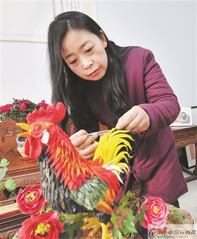 2017年農(nóng)歷雞年即將來(lái)臨,我市面塑代表性傳承人、民間藝術(shù)家朱月香女士特意創(chuàng)作了面塑作品《“雞”祥如意》。