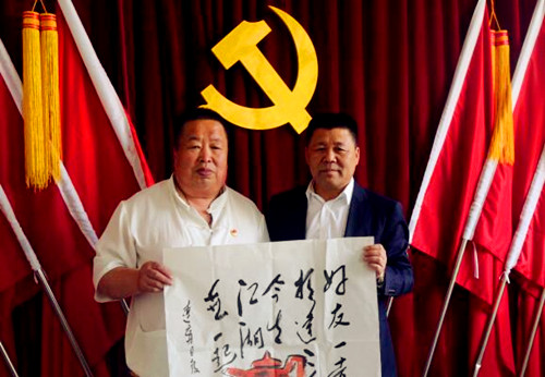 記者走進(jìn)老爺廟村,所見所聞名不虛傳,小村極其敞亮,整潔,村部里的墻上懸掛著的書畫,皆為當(dāng)?shù)孛酥,讓你感悟出蓋州文化大縣所折射出的鄉(xiāng)村里的水墨之光。蓋州名人多,自古多豪杰,曾被國內(nèi)外傳唱的《蘇武牧羊》的作者蔣蔭堂就出生在這里,蜚聲國內(nèi)外的書畫大家魏碑泰斗沈延毅先生也出生在這里,后來出現(xiàn)許許多多的書畫家如呂公眉,陳元高,王一鳴,倪久齡,高顯惠,洛兵,孫金龍,于紀(jì)偉等等。