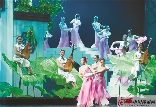 “我生在太湖之濱,吳儂軟語(yǔ),吳歌雅韻;我長(zhǎng)在云龍山下,奔騰浩蕩的漢風(fēng),兩千年穿越,九萬(wàn)里縱橫……”交響音詩(shī)畫《我是江蘇人》拉開(kāi)了演出帷幕。當(dāng)唱著吳儂軟語(yǔ)的評(píng)彈姑娘們宛如天外飛仙一般出現(xiàn)在舞臺(tái)上空的時(shí)候,臺(tái)下響起一片贊嘆!豆锰K好風(fēng)光》《太湖美》《煙花三月》《拔根蘆柴花》等飽含江蘇風(fēng)情的經(jīng)典歌曲聯(lián)唱,唱出了難忘的鄉(xiāng)音,唱出了游子回家的期盼。