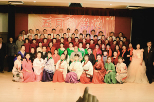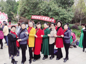 一班班長王小梅、呂巧云熱忱為大伙兒服務,選購演出服裝道具,不辭勞苦,收費、找零,不合體還要來來回回跑幾趟退換。復印歌詞、詩詞,組織姐妹們加班加點排練舞臺走秀及朗誦,真是操心費神。學員吳士強出差在外,心系家園,在群里打聽上的什么課,有什么功課要做,要求同學將學習材料及時發(fā)給他,抽空閑時間多加練習。