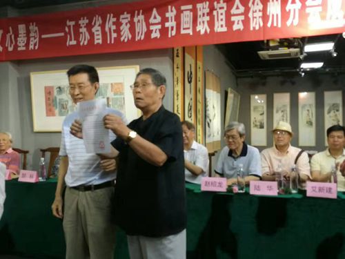 中國黃淮網(wǎng)2017年7月3日消息(玫瑰):7月2日,江蘇省作協(xié)書畫聯(lián)誼會徐州分會宣告成立,徐州市政協(xié)副主席張耀環(huán)、江蘇省作家協(xié)會書記處書記王朔、著名畫家賀成等領(lǐng)導和嘉賓參加了江蘇省作協(xié)書畫聯(lián)誼會徐州分會成立儀式,并參觀了江蘇省作家協(xié)會書畫聯(lián)誼會徐州分會首屆書畫展。