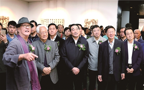 原南京軍區(qū)政委方祖岐、江蘇省委原副書記顧浩、省政協(xié)原副主席徐鳴、市委書記周鐵根、省文化廳廳長楊志純、省文化投資管理集團董事長梁勇、南京市人大常委會原副主任李福全、南京市原副市長陸冰,省文聯(lián)副主席、省國畫院院長周京新,江蘇省國畫院、書研院、書畫院名譽院長趙緒成,市領(lǐng)導(dǎo)馮其譜、吳新福、李君超、李燕、王軍等出席。