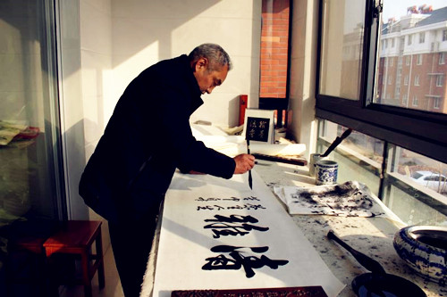 王民學(xué)先生的話語不多,很多事情總是微笑面對(duì)。即使再忙仍每天抽出時(shí)間研習(xí)書法,對(duì)于一個(gè)書法家來說,書法之路是永無止境的。不抽出時(shí)間認(rèn)真的推敲是寫不出好的作品的,是常人無法理解的在書法世界里的一種修行。伏案燈下創(chuàng)作到深夜更是常事,王民學(xué)先生在書畫界可以說是德藝雙馨 。