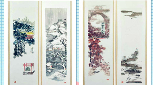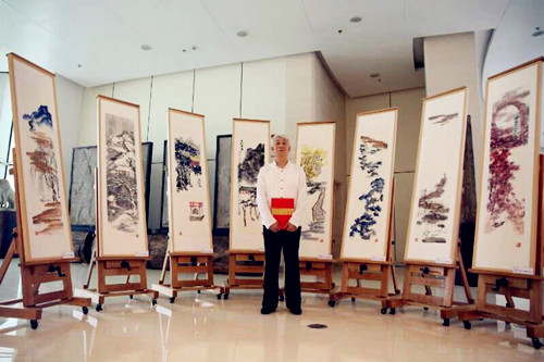 本次大賽共征集參賽作品千余件,其中實物作品300件。最終,組委會共評選出入圍獎8名、優(yōu)秀獎4名、特殊貢獻(xiàn)獎2名。頒獎儀式現(xiàn)場展出的天柱排青、輝山晴雪、渾河晚渡、塔灣夕照、柳塘避暑、花泊觀蓮、皇寺鳴鐘和萬泉垂釣8幅畫作組成的“盛京八景”備受矚目。周維新和他的《盛京八景》 周維新告訴記者,其父是藝術(shù)家周鐵衡,為齊白石的入室弟子、郭沫若的摯友。“盛京八景”原為父親周鐵衡所創(chuàng)作,由于原畫作部分遺失,周維新根據(jù)父親的技法將其中四幅加入現(xiàn)代元素歷時半年之久將“盛京八景”創(chuàng)作完成。