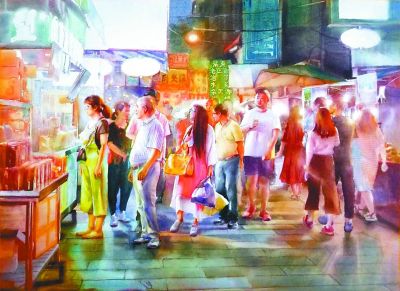 長安夜話(水彩畫) 鄭睿凡(西安美術(shù)學(xué)院)