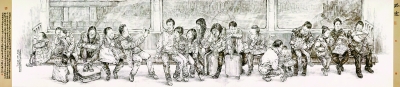 表現(xiàn)主題的豐富多樣是美院畢業(yè)展的一大看點,而相同主題下各具特色的表現(xiàn)方式則是學(xué)生創(chuàng)造力的體現(xiàn)。清華美院畢業(yè)生于新華的《團隊·秀》,四川美院畢業(yè)生羅凱源的《修理工》、魏占勝的《礦工》、李海瑞的《都市棒棒軍》以不同的角度表現(xiàn)了勞動者的精神風貌。中央美院畢業(yè)生畢語之的《云水間》、西安美院畢業(yè)生王冰的《軍中綠花組畫》同樣在贊頌中國軍人的颯爽英姿,卻運用了截然不同的畫面分割方式。清華美院畢業(yè)生秦鯖的《索朗旺姆的幸福生活》,四川美院畢業(yè)生王冰青的《幸福生活》、張揚的《康樂綿延》、鄭翔懿的《祥和》、包笙楠的《春暉》表現(xiàn)了人民群眾多彩的幸福生活。西安美院畢業(yè)生楊琪的《名人錄》以具有強烈視覺沖擊力的黑白版畫,生動刻畫了齊白石、張愛玲、陳忠實等名人的肖像。