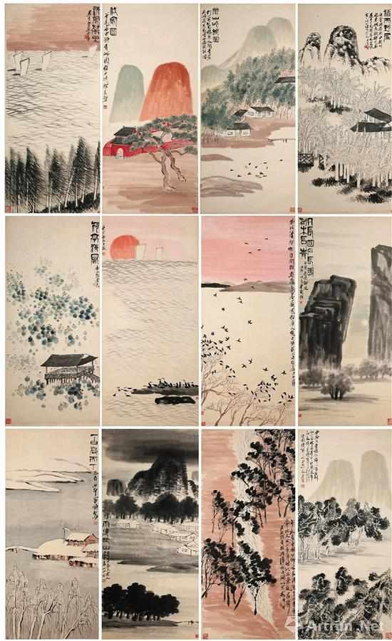 齊白石 四季山水十二條屏 138×62cm