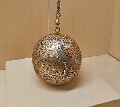 法門寺地宮出土的鎏金雙蜂團(tuán)花紋鏤空銀香囊 本報記者 李韻攝/光明圖片