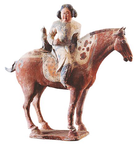 彩繪陶騎馬帶猞猁狩獵胡女俑 唐 開元十二年(724年)