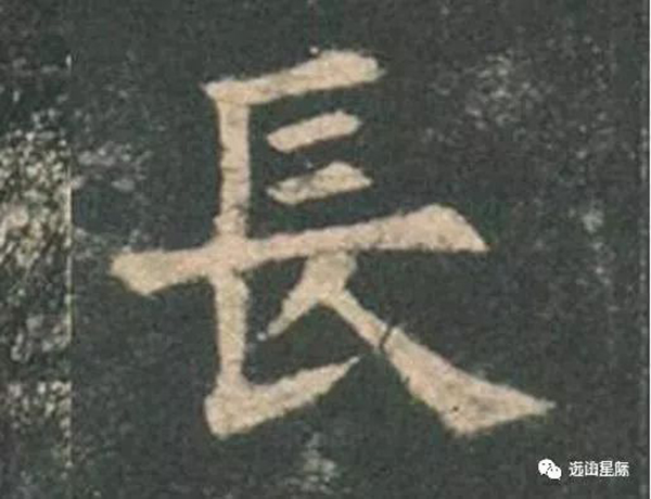 “長”的下部有意識的向右移,上下豎正對,出人意料。