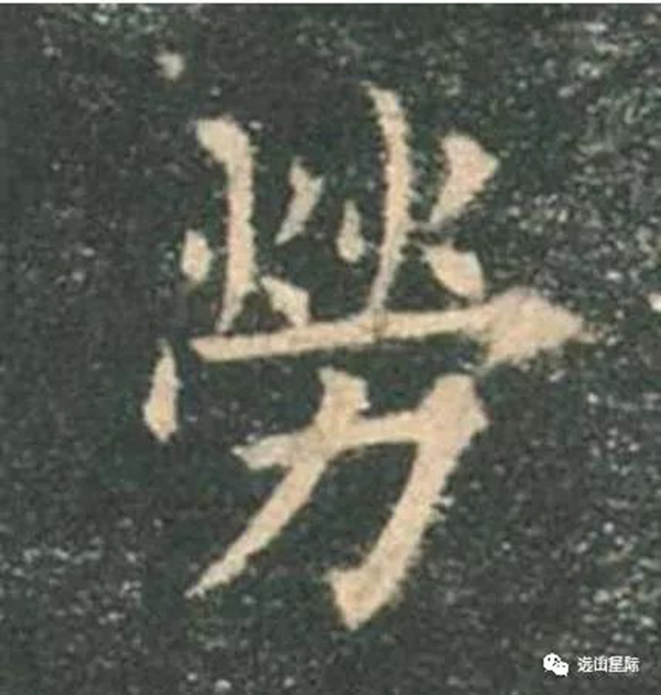 “勞”的上部兩個“火”大小不一,都向左斜。