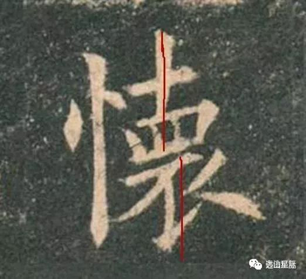 “微”的斜文旁因?yàn)槠厕喙P左移,上下兩部分沒有完全對正,屬于斜戴帽,有點(diǎn)像二流子,你不要因?yàn)闅W陽詢寫字一本正經(jīng),有時挺幽默的。這樣的還有“本”字等等。