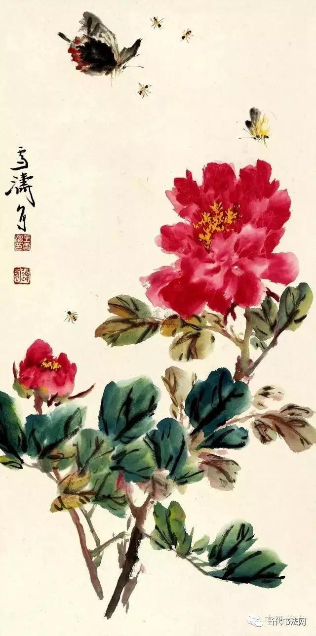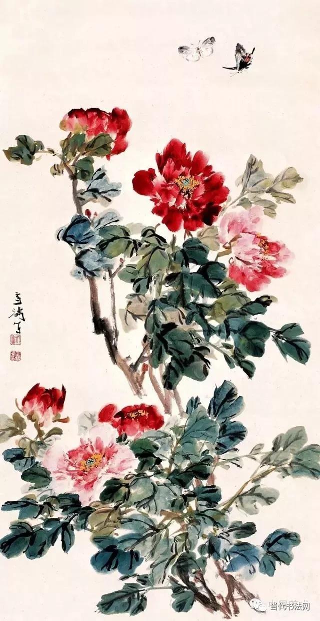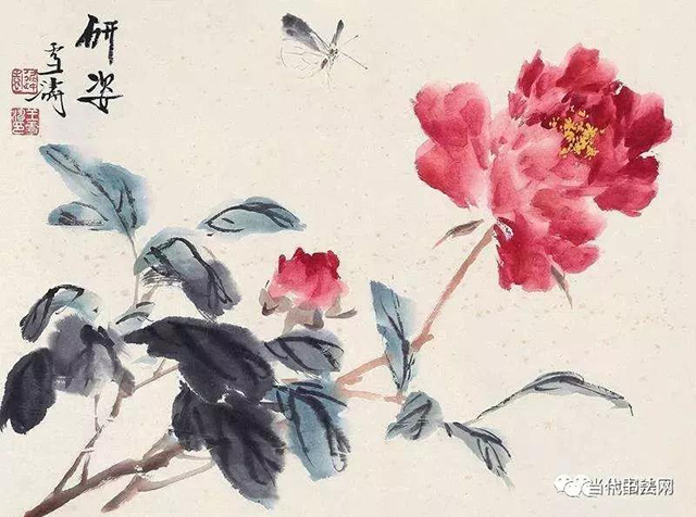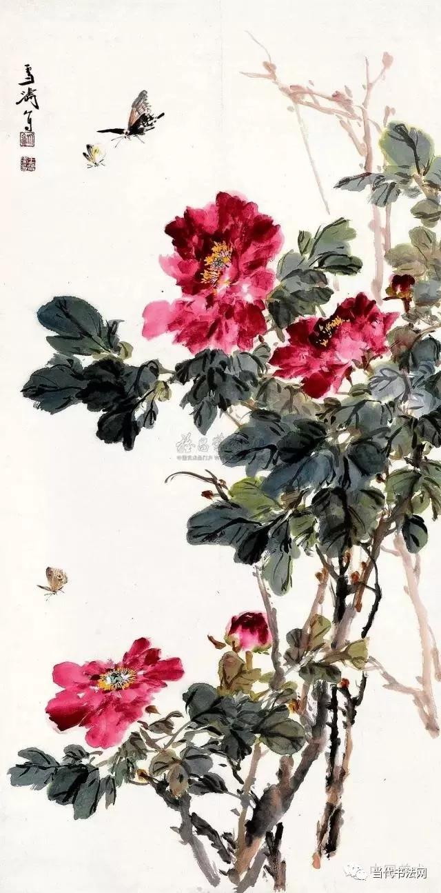 畫(huà)牡丹最重要是要表達(dá)牡丹花的高貴而不俗和雍容大度的氣質(zhì),但往往都易犯“三病”:一是用色不當(dāng),絢紅搭綠,尖跳刺目,臃腫軟疲,即為“甜俗”。二是一味粉厚色濃,干澀涂抹,滯膩浮漲,色墨混濁,此謂“脂粉氣”。三是凝結(jié)板刻、僵硬平勻、造型陳腐、缺乏生氣,俗稱“工藝氣”。