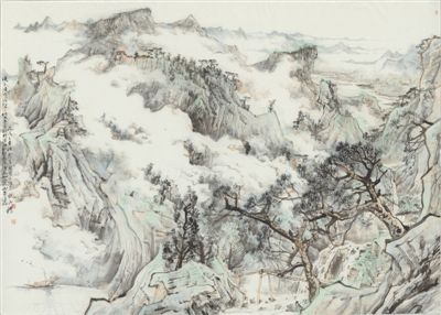曉風(fēng)漫卷嶺頭云(中國畫)