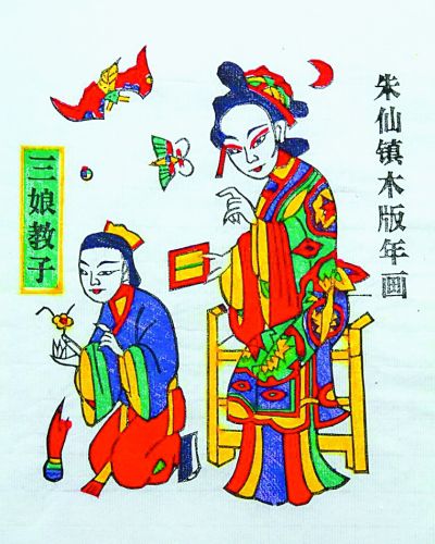 朱仙鎮(zhèn)木版年畫的題材多源于中原地區(qū)流傳廣泛的民間故事、神話傳說和戲曲等,種類繁多,制作工藝也十分考究,其制作流程經(jīng)過繪稿、刻板、印刷三道工序,普通年畫以黑、黃、紅、丹、綠、紫六色為主,先淡后重,依次套印而成,高檔年畫與神像畫人物之眼眸、胡須、服飾則需加套水墨、金粉等,套色多達(dá)九遍。代表作品有《馬上鞭》《步下鞭》《三娘教子》《滿載而歸》等。魯迅曾說:“朱仙鎮(zhèn)木版年畫很好,雕刻的線條粗健有力,和其他地方的不同,這些木刻很樸實(shí),不涂脂粉,人物也沒有媚態(tài),顏色很濃重,有鄉(xiāng)土味,具有北方木版年畫的獨(dú)有特色。”現(xiàn)在的上海魯迅紀(jì)念館,還珍藏有魯迅先生收藏的朱仙鎮(zhèn)年畫作品。