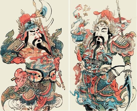 進(jìn)祿武門神(左) 加官武門神(右) 蘇州桃花塢年畫