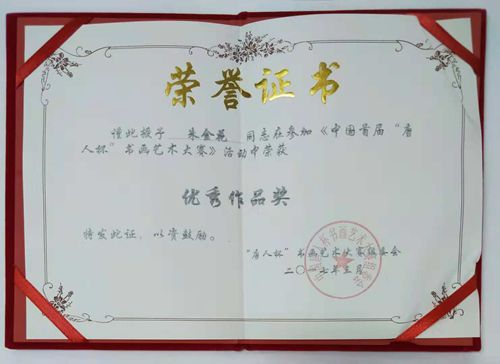 20173月榮獲《中國首屆“唐人杯”書畫藝術大賽》優(yōu)秀作品獎。