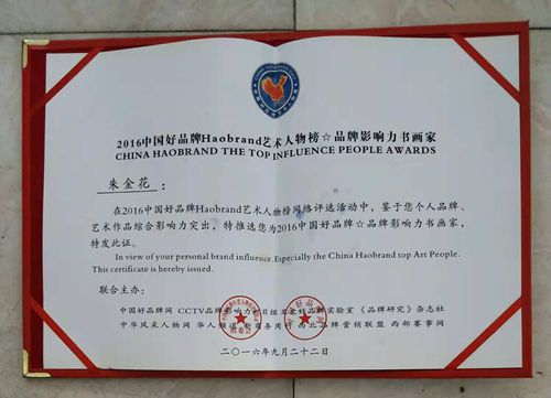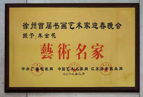20182月,中國廣播電視網(wǎng)、中國藝術名家網(wǎng)、江蘇揚子報業(yè)網(wǎng)授予朱金花為“藝術名家”。