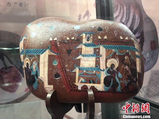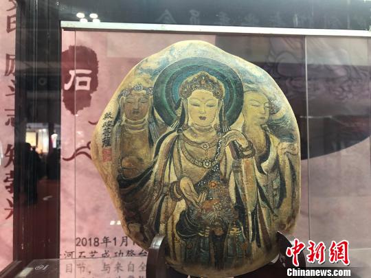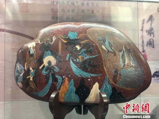 圖為繪有敦煌壁畫(huà)的黃河奇石。 徐雪 攝