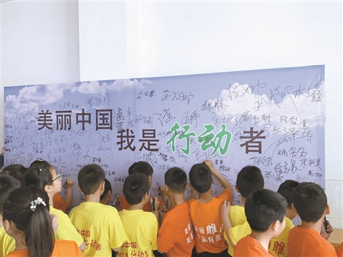 內(nèi)容摘要:“童眼”看綠 “童畫”繪美 小學(xué)生在生態(tài)宣言簽名墻上簽名。徐州日報全媒體記者 劉作霖 通訊員 顧士剛 攝